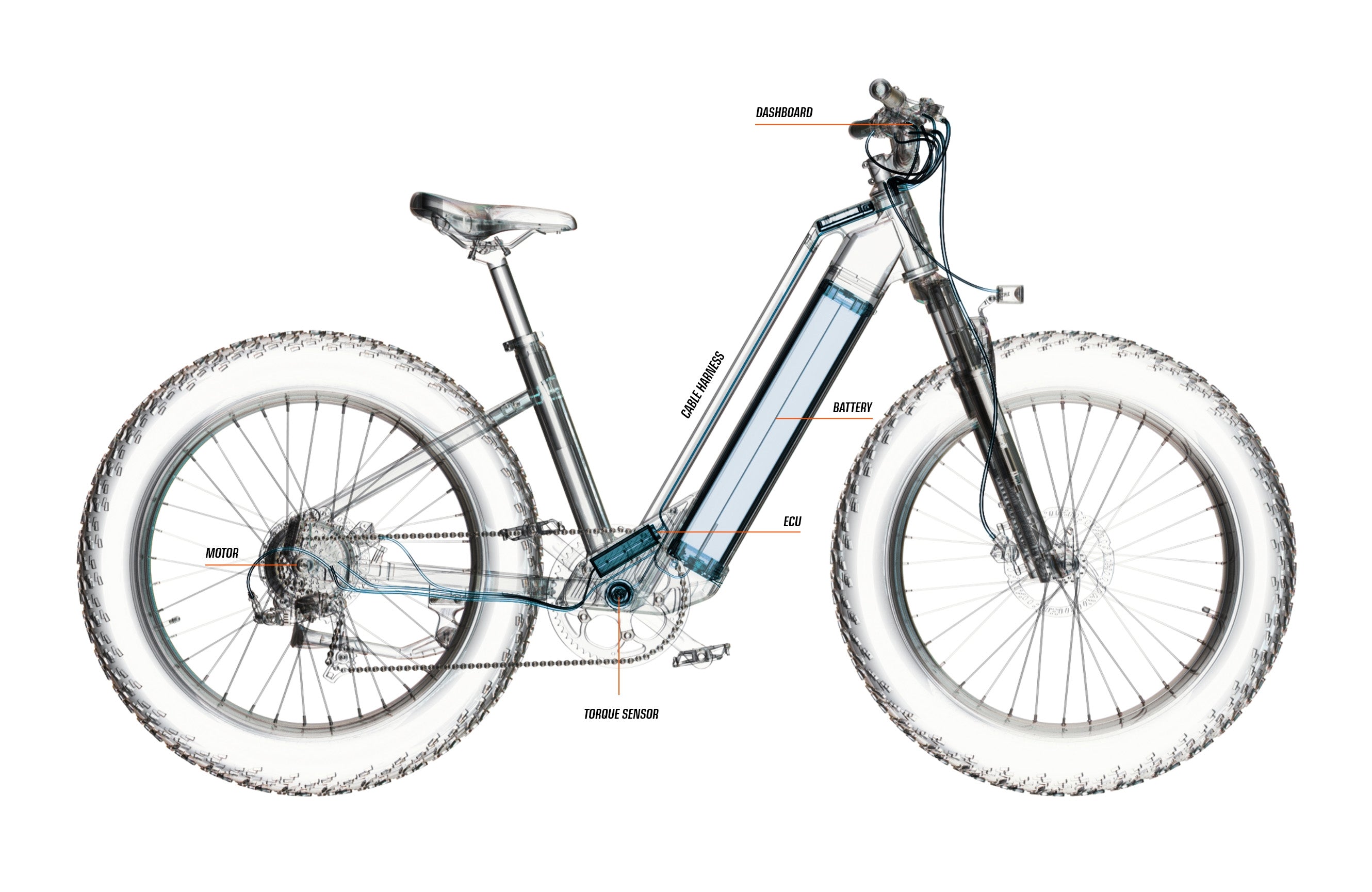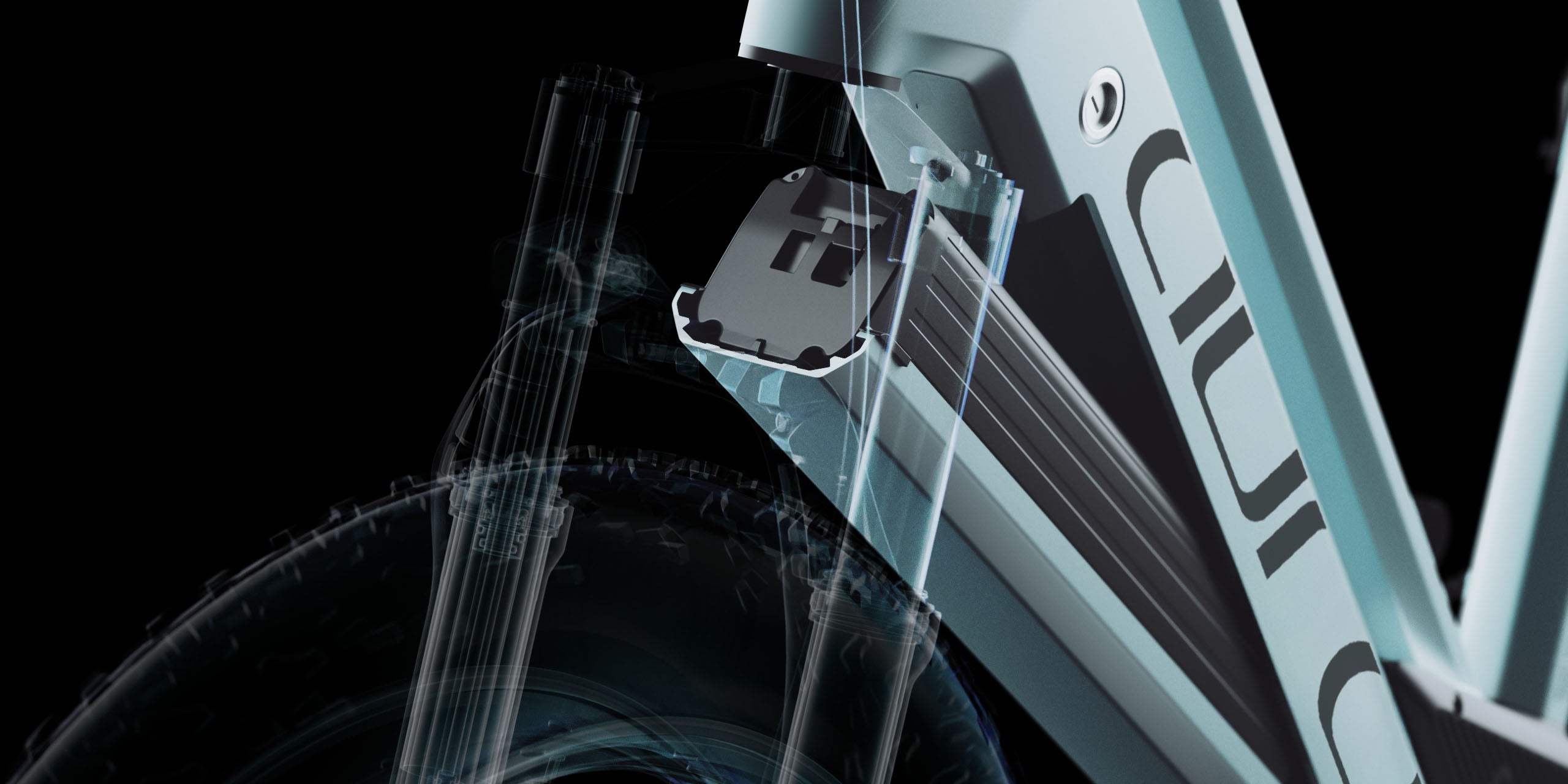 Die charakteristischen parallelen Rohre des Aura beherbergen ordentlich die Batterie, den Motorcontroller und die Verkabelung, optimieren die Raumnutzung und sorgen gleichzeitig für eine interne Organisation.