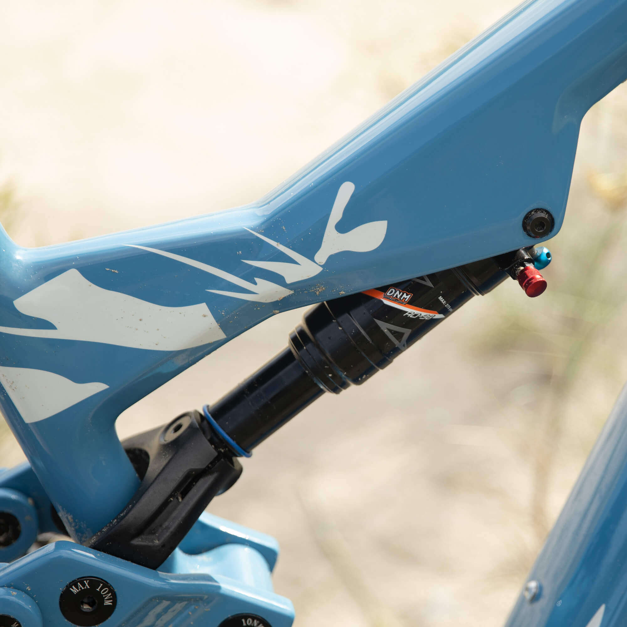 Der Kohlefaserrahmen des Hurricane und die 4-Gelenk-Softtail-Struktur bieten eine leichte und dennoch robuste Bauweise. Gepaart mit der GTMRK Inverted Air Suspension und der DNM Luftfederung bietet es unübertroffenen Komfort und Kontrolle auf jedem Terrain.
