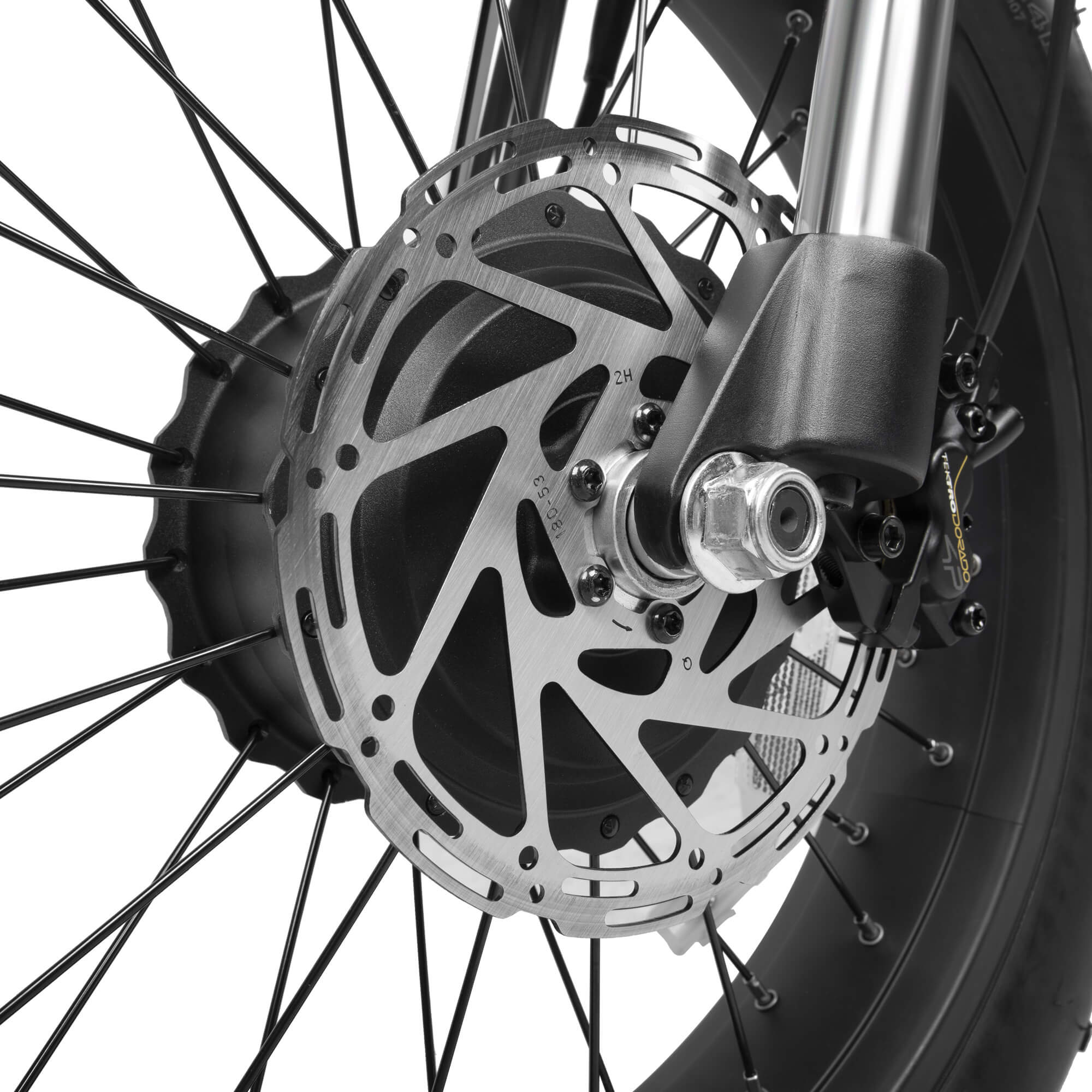 Das Cyrusher Scout ist voll gefedert und verfügt über eine Vorderrad-Federgabel mit Lockout und Einstellmöglichkeit sowie über eine Luftfederung hinten. Zusammen mit den fetten 20"x4.0“ Kenda-Reifen bietet das Bike eine hervorragende Stoßdämpfung, verbesserte Stabilität und Kontrolle auf einer Vielzahl von Untergründen, einschließlich Sand, Schnee und rauen Trails. Das Fahrrad ist auf Komfort ausgelegt, auch auf unebenem Gelände.