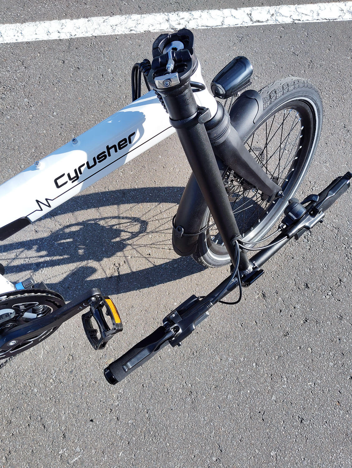 Kompaktes Kraftpaket: Das Cyrusher Sonder faltbare eBikeDas faltbare eBike von Cyrusher Sonder ist die ultimative Kombination aus Bequemlichkeit, Leistung und Komfort. Das Sonder wurde speziell für Pendler in der Stadt entwickelt und verfügt über einen kompakten, faltbaren Rahmen, der eine einfache Lagerung und einen leichten Transport ermöglicht, wodurch es perfekt für die Navigation auf belebten Straßen oder in öffentlichen Verkehrsmitteln geeignet ist. Trotz seiner geringen Größe verfügt das Sonder über einen 48V 250W bürstenlosen Motor und eine 48V 10Ah Batterie, die eine robuste Reichweite von bis zu 53 Meilen mit einer einzigen Ladung ermöglicht.