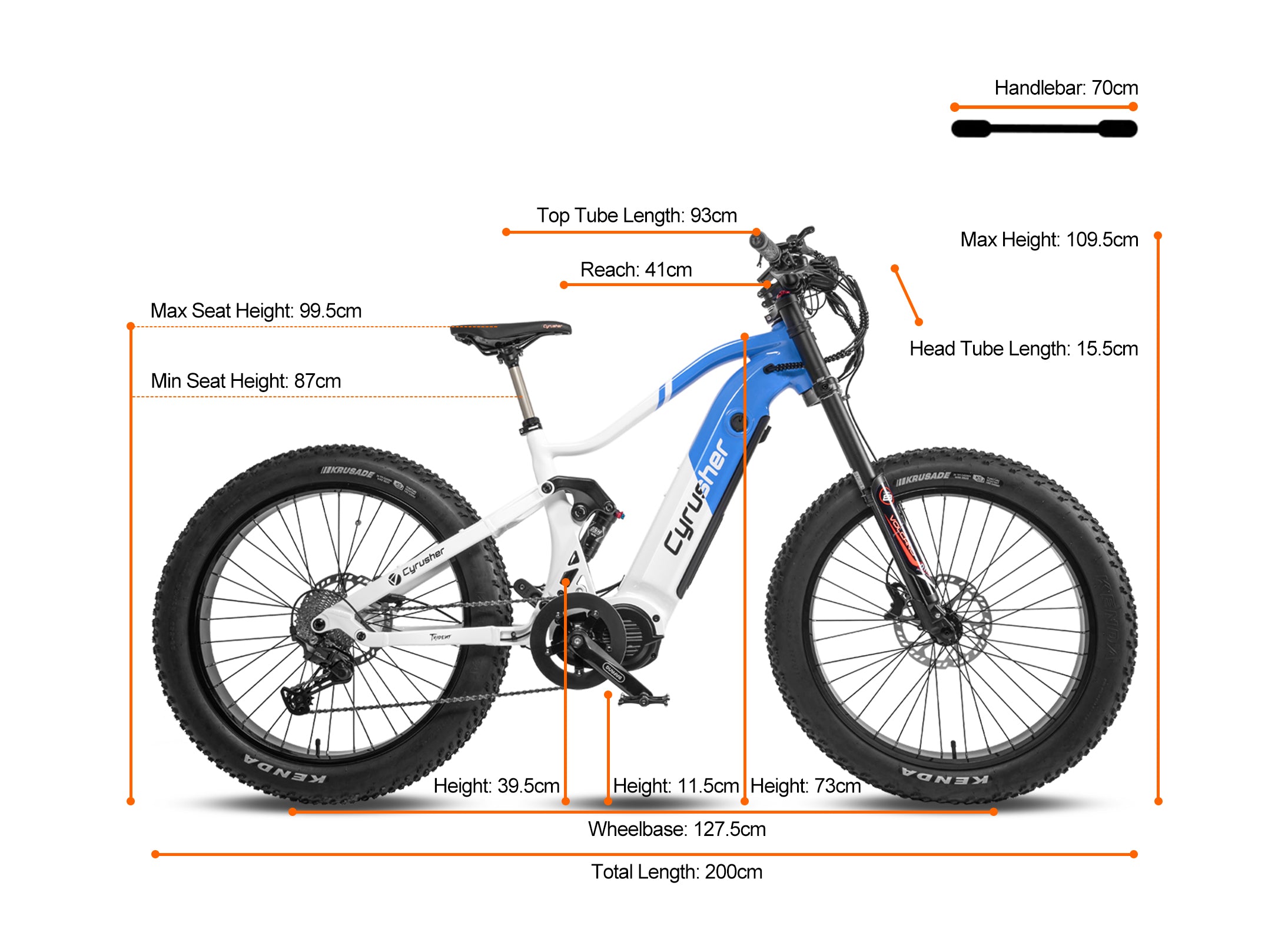 Das Cyrusher Trident ist mit einem Bafang-Mittelmotor ausgestattet, der ein Drehmoment von 160 Nm liefert. Dies bietet außergewöhnliche Bergsteigerfähigkeiten und ermöglicht es Ihnen, die härtesten Terrains mit Leichtigkeit zu bewältigen. Ob Sie steile Hügel hinauffahren oder auf flachen Wegen cruisen, der Trident sorgt für eine kraftvolle und effiziente Fahrt.